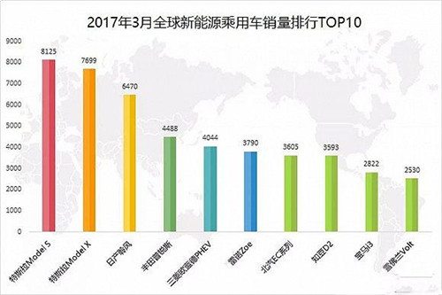 3月全球新能源車銷量前十榜單 兩款中國車上榜