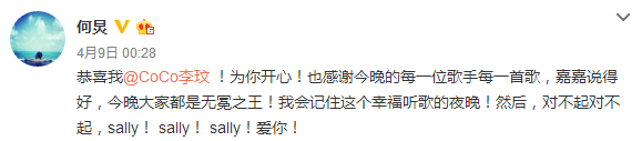 隨后,何炅也發(fā)文想葉倩文道歉,連說了兩次“對不起”。