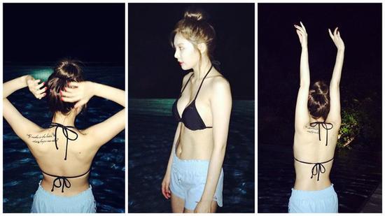 23歲的泫雅昨天看起來似乎是在戶外泳池戲水,她po出3張上半身穿著黑色比基尼、下半身套上藍(lán)色短褲的照片,還寫道:“度過一段美好的時(shí)光,好開心?!闭掌械乃裏o論是側(cè)面或背影,身材都完美得無懈可擊,難怪吸引逾11萬粉絲按贊。