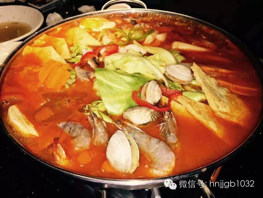 專屬定制鍋塞滿了南瓜粥、牛肉湯、玉米粒、青菜,中間的大只肋排提前用韓式醬料腌制過烤制全熟,待鍋中的芝士融化,與肋排纏繞一起食用,哇,想想都要流口水。還有贈(zèng)送的愛心便當(dāng)呢,酸甜的口味與蔬菜拌好食用,滿口是小時(shí)候媽媽的味道。實(shí)在是太贊了!