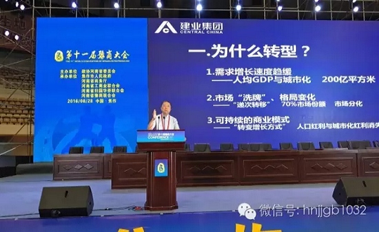 在主題論壇上,建業(yè)住宅集團(中國)有限公司董事局主席、嵩山資本創(chuàng)始人胡葆森以建業(yè)為例,談到河南房地產(chǎn)企業(yè)的轉(zhuǎn)型。他認為,隨著人們需求增長速度的放緩以及市場的不斷分化,房地產(chǎn)市場也在進行著洗牌、競爭格局發(fā)生變化。