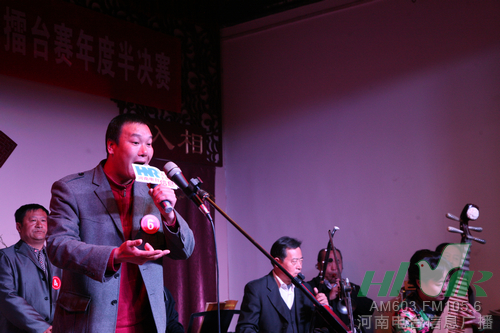 今天(3月19日)上午,鄭州德樂(lè)相聲社400多平米的演出大廳座無(wú)虛席,來(lái)自全省各地的21名戲迷選手匯聚一堂,2012年“中原戲迷擂臺(tái)賽”下半年度半決賽正式開賽。經(jīng)過(guò)激烈角逐,來(lái)自鄭州的李宗書、王彩霞、劉梁、張華,新鄉(xiāng)的楊國(guó)朋、王愛梅,新密的馬少峰,周口的吳瑞霞,長(zhǎng)垣的劉艷東,鶴壁的王少紅晉級(jí)十強(qiáng),直通總決賽。
