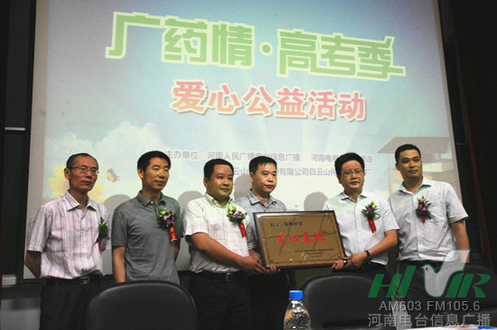 6月3號(hào),河南電臺(tái)信息廣播聯(lián)合河南電視臺(tái)第九頻道、廣州白云山何濟(jì)公制藥廠,在鄭州大學(xué)共同舉辦了以“愛心助高考 迎接新人生”為主題的“廣藥情 高考季”系列愛心公益活動(dòng)。