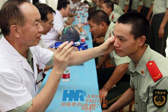 活動中,10名河電臺信息廣播的熱心聽眾作為軍民共建的代表,跟隨醫(yī)療專家來到軍營,為武警官兵送上了10箱涼茶消暑。隨后,15名武警河南總隊醫(yī)院骨科、眼科等科室的專家為子弟兵們進(jìn)行了義診。