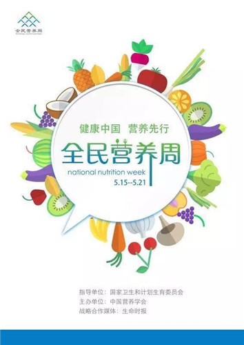 2016年5月15日-5月21日是我國(guó)第二個(gè)“全民營(yíng)養(yǎng)周”。今年“全民營(yíng)養(yǎng)周”(NNW)的主題以“平衡膳食,營(yíng)養(yǎng)健康”為主要內(nèi)容進(jìn)行科普教育和宣傳??谔?hào)為“健康中國(guó),營(yíng)養(yǎng)先行”。