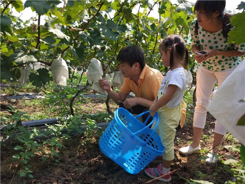 難得的親子互動機(jī)會,不僅能讓寶貝了解葡萄是如何生長和采摘的,還能和寶貝來次親密互動~