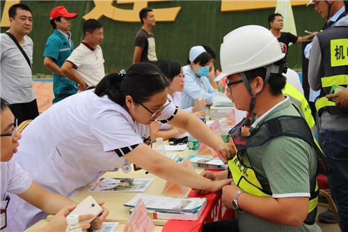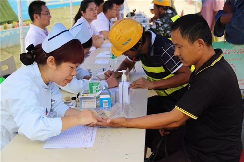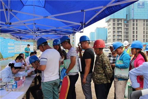 一大早,五大醫(yī)院的白衣天使們,就來到了中建三局鄭州航空港棚戶區(qū)改造的施工現(xiàn)場(chǎng)。開始準(zhǔn)備工作,希望能夠更好地為建筑工人們做健康檢查。
