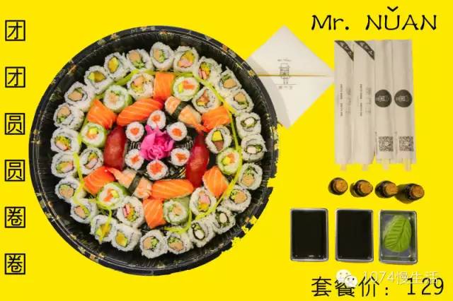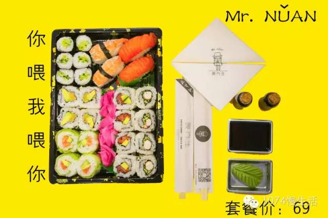 壽司套盒很精致有木有?名字也起的很逗趣就像今天的天氣,雨天不便出行,又想一個人宅在家里過一個慵懶的周末的話,定個一人套餐再合適不過了。