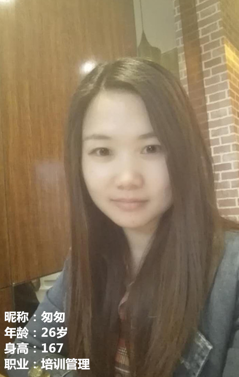 大家好,我是匆匆,今年26歲,在鄭州從事培訓(xùn)管理工作。繁忙的工作和生活,讓我不知不覺的剩了下來,回頭觀望來時(shí)的路,卻驚訝地發(fā)現(xiàn)這么多年我的人生旅途中的桃花卻沒有盛開過,不禁陷入憂思和反思中,為什么我的條件也不差,卻一直過著單身的生活,或許自己太過忙碌,忘記了身邊的風(fēng)景,或許平時(shí)太過理性,在成長的過程中太過注重成熟忽視了一見傾心的偉大力量,又或許自己不夠勇敢,不敢去追求那份不論位置但求無愧于心的愛情。時(shí)光匆匆的走過,不知不覺我已經(jīng)過了二十五開始進(jìn)入女人真正衰老的旅程,好害怕在這最美好年華任憑自己悄悄地老去,因此今天我為了自己的幸福勇敢地跨出了第一步,你是在那個(gè)地方等我的人嗎,對于另一半說實(shí)話我還真的沒有什么條條框框,但是就像買鞋子,不要求名貴漂亮,但一定要合腳。我希望他可以成熟、穩(wěn)重,可以作為一個(gè)依靠在我身邊,無論遇見什么事情都可以在一起承擔(dān),至于長相及其他條件,希望他身高175cm以上吧,愿意在鄭州定居,可以養(yǎng)活自己和自己的父母即可。