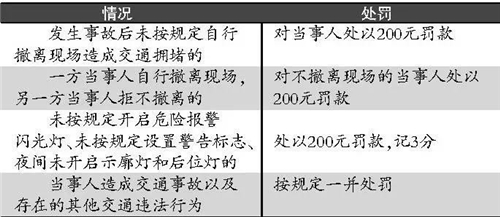 即日起,交管部門將依法加強(qiáng)對“發(fā)生輕微交通事故后,未按照規(guī)定自行撤離現(xiàn)場”的交通違法行為的處罰力度,輕微事故發(fā)生后撤離不及時致堵將被罰款200元,如果未按規(guī)定開啟危險報警閃光燈等,將處以200元罰款,記3分。交管部門表示,對應(yīng)挪車不挪車的事故當(dāng)事人“當(dāng)罰必罰”。