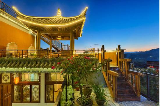 ?。ㄎ恢茫壶B巢位于古鎮(zhèn)中心,主體是一個兩層建筑,獨立私密的院落,鬧中取靜,客房7間,360°觀景,讓人足不出戶便可將和順古鎮(zhèn)的田園風光盡收眼底:遠方是靜靜矗立的山黛;近則小橋流水、荷塘雨亭,以及古樸的屋舍儼然錯落有致,讓人仿佛闖入了陶潛筆下的世外桃源一般。靜謐祥和、和諧安康,這是古鎮(zhèn)百年的積淀,也是初鳥巢極力想帶給旅客們的舒心體驗。