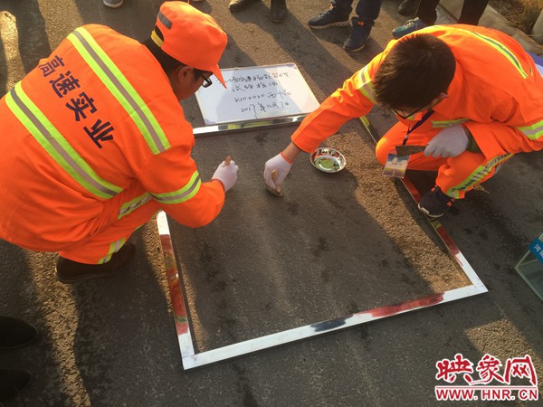 道路養(yǎng)護工作人員正在測試每平米浮塵重量