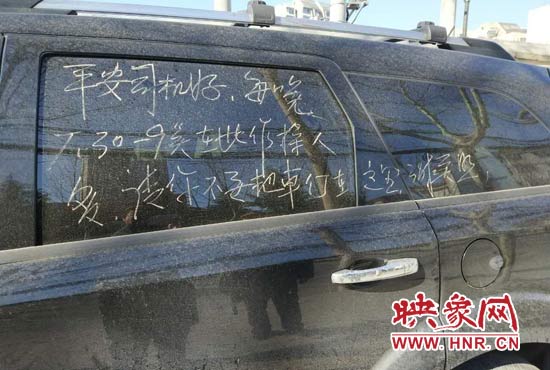 映象網(wǎng)快訊(記者 邱延波 文/圖)眾所周知,在全國各地,大爺大媽們對廣場舞的熱愛,幾乎是風(fēng)雨無阻,雷打不動。鄭州市一車輛停在路邊,影響了大爺大媽們跳廣場舞,是可忍孰不可忍,他們在車上寫下"通牒",提醒車主早點把車開走。