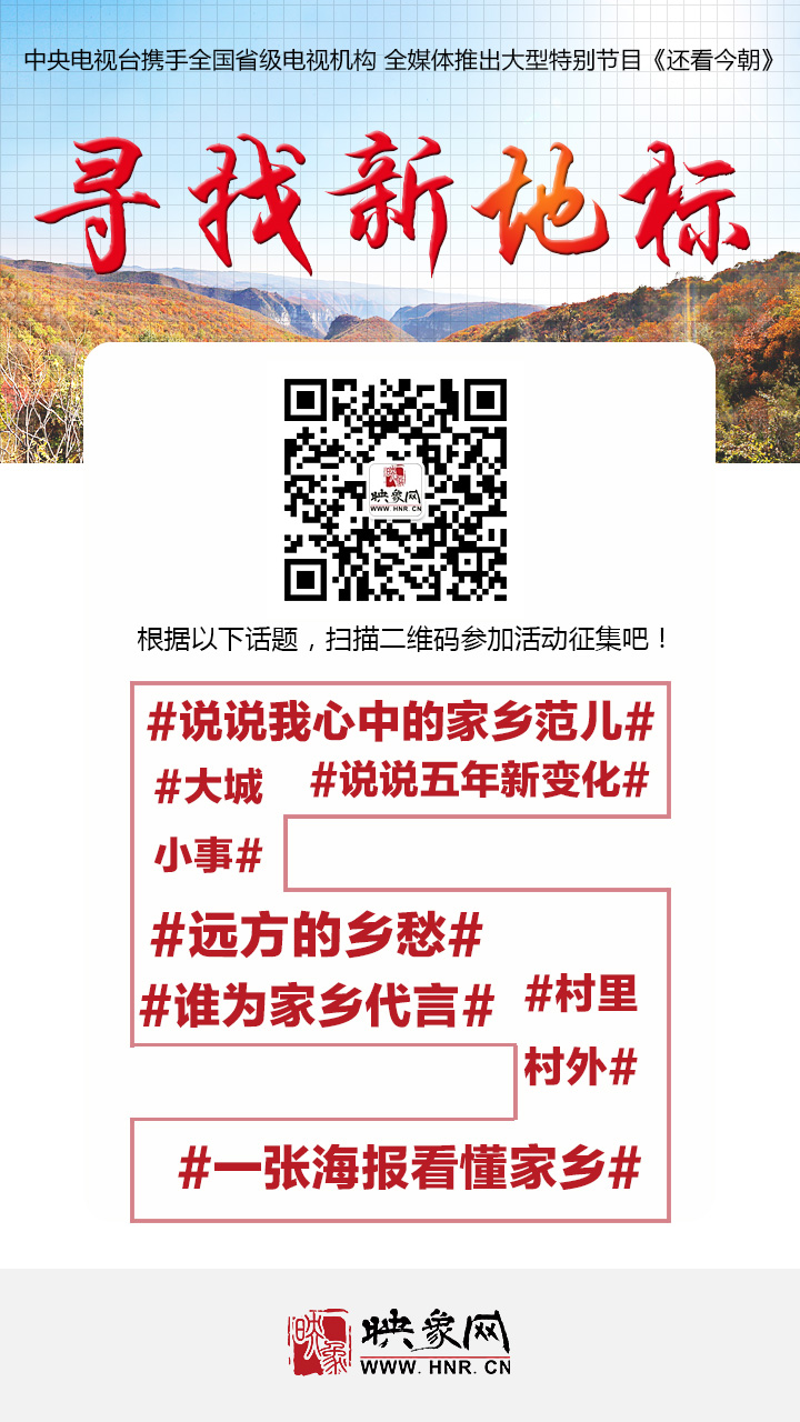 大象融媒映象網(wǎng)作為河南唯一合作新聞門戶網(wǎng)站,現(xiàn)特向全省征集創(chuàng)意圖片、視頻。如果你想成為家鄉(xiāng)的代言人,就馬上把你的圖片和視頻傳至我們的郵箱:yingxiangxinwen@163.com。一旦被選中,優(yōu)秀作品將先在映象網(wǎng)專題中進(jìn)行展示,還將有機(jī)會(huì)被選送央視《還看今朝》節(jié)目。