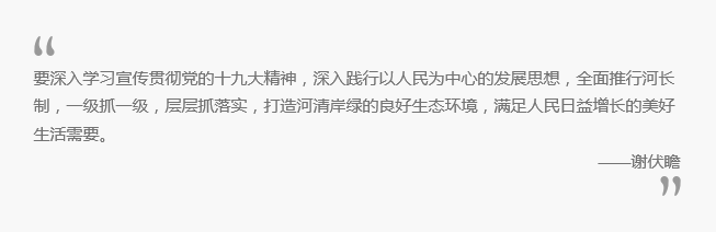 謝伏瞻指出,我們要認(rèn)真學(xué)習(xí)宣傳貫徹十九大精神,按照省委省政府制定的方案,全面落實河長制,強(qiáng)化屬地責(zé)任,健全長效機(jī)制,細(xì)化措施辦法,嚴(yán)格追責(zé)問責(zé),保護(hù)水資源,治理水污染,修復(fù)水生態(tài)。各級領(lǐng)導(dǎo)要負(fù)責(zé),各項制度要落地,各級政府要投入,各項工作要扎實,合力攻堅,真正形成人人參與、共建共享的良好局面。