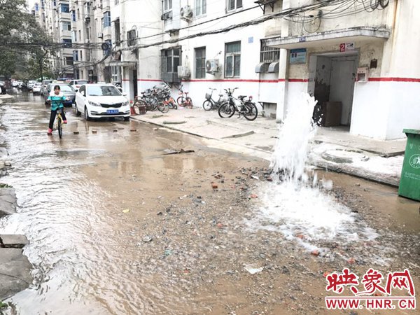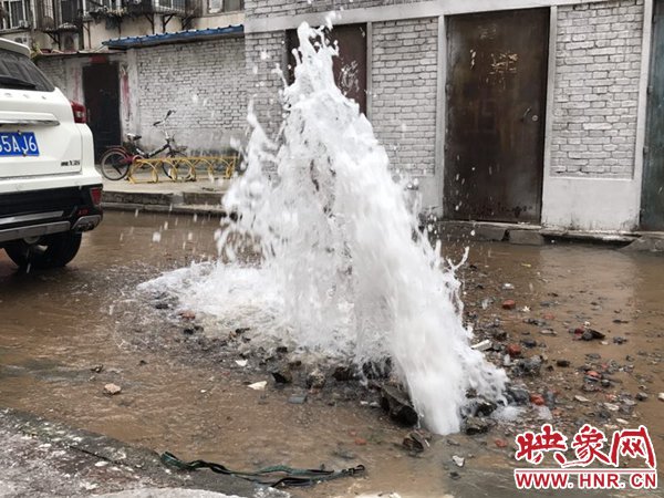 映象網(wǎng)快訊(記者 邱延波 文/圖)11月19日,鄭州桐淮小區(qū)南家屬院19號樓前,因地下自來水主管道爆管導(dǎo)致路面噴出2米多高的“噴泉”,白白浪費掉兩三個小時的自來水。一輛轎車壓住閥門井蓋導(dǎo)致無法關(guān)閉閥門,而車主在黃河邊,下午才能回來,工作人員只好把小區(qū)的總閥門關(guān)閉。19日上午9時許,桐柏路汝河路口東南角處的桐淮小區(qū)南院19號樓2門洞前的自來水地下管道爆管現(xiàn)場,小區(qū)水泥路邊爛個洞,噴出高高的水柱,小區(qū)道路上全是積水。