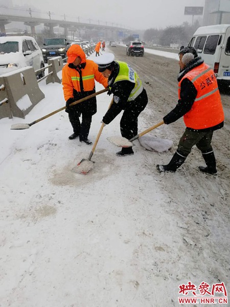 交警六大隊(duì)增加對金水東路、商鼎路、商都路的巡查密度,利用喊話器在事故易發(fā)路段提醒司乘人員減速慢行,及時(shí)掌握路面積雪、車流量等道路通行情況。市區(qū)交警九大隊(duì)在金水路沿線協(xié)助清掃積雪,救助滑倒的行人5人。