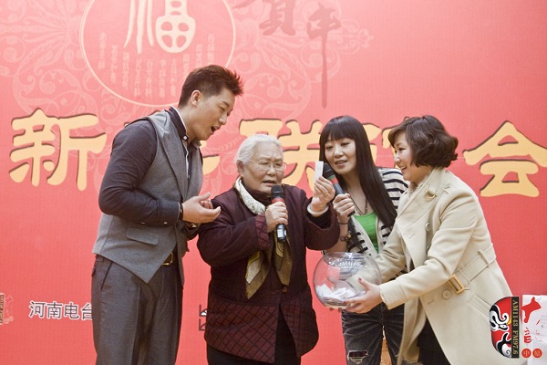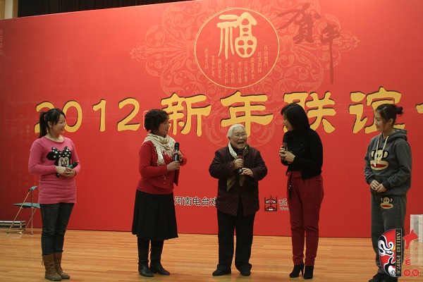 12月28日,一臺由河南藝術(shù)家及戲迷共同參與的新春聯(lián)誼會在河南廣播大廈舉行。本次活動由河南電臺戲曲廣播、戲曲出版網(wǎng)共同舉辦。聯(lián)誼會上,老中青三代名家與戲迷歡聚一堂,氣氛異常熱烈。曾經(jīng)在電影《朝陽溝》中飾演拴保娘的豫劇名家高潔、在電影《扒瓜園》中飾演國英的越調(diào)名家劉琳,中國戲劇梅花獎得主楊帥學(xué)、申小梅,豫劇《朝陽溝》中新一代“拴?!钡娘椦菡呤⒓t林,為現(xiàn)場熱情的戲迷表演了各自的拿手好戲。藝術(shù)家的精彩演唱博得現(xiàn)場觀眾叫好聲、掌聲不斷,戲曲名家與戲迷共同參與的互動游戲使得本次聯(lián)誼會高潮迭起……當(dāng)豫劇大師馬金鳳的身影出現(xiàn)在大屏幕上時,現(xiàn)場一片安靜。今年90高齡的馬金鳳大師在聽說戲迷聯(lián)誼會舉行的消息后,特別送來了新年的問候和祝福,馬老的祝福視頻播完,激動的戲迷爆發(fā)出一陣熱烈的掌聲……戲迷趙錢孫(網(wǎng)名)專程從北京趕來參加活動,這位小伙子是越調(diào)藝術(shù)的忠實的支持者,2007年他自費創(chuàng)辦了中國越調(diào)網(wǎng),在宣傳和推介越調(diào)劇種方面做出了杰出貢獻(xiàn)。聯(lián)誼會上,他和其他四位越調(diào)戲迷自拉自唱了越調(diào)申派名段《收姜維》中的“四千歲你莫要羞愧難當(dāng)”,博得了現(xiàn)場觀眾的熱情掌聲。85歲的戲迷、著名戲曲活動家劉建勛老師為表達(dá)激動的心情,特別為本次聯(lián)誼會寫了一首五言律詩,獻(xiàn)給熱情的戲迷觀眾。 “歲末二十八,大地又回春。戲迷慶元旦,賓客多如云。久別重逢日,相見格外親。你拉我來唱,鄉(xiāng)音暖人心。唱出心坎語,唱出好精神,唱出凌云志,唱響河南人。共同來祝愿:活過一百春!聯(lián)誼會結(jié)束后,很多觀眾意猶未盡,久久不愿離去,他們紛紛與自己喜愛的戲曲名家溝通交流、合影留念。多位戲迷在接受采訪時說:感謝戲曲廣播舉辦了這次聯(lián)誼會,不僅給戲迷提供了交流的平臺,而且拉進(jìn)了戲迷與名家的距離……(本次活動部分照片由小草提供)