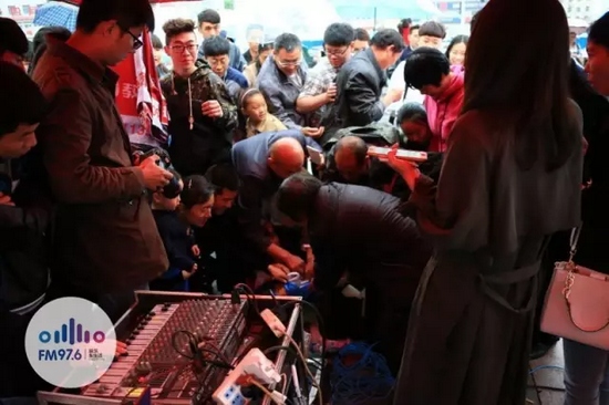 976給現(xiàn)場觀眾發(fā)放雨傘