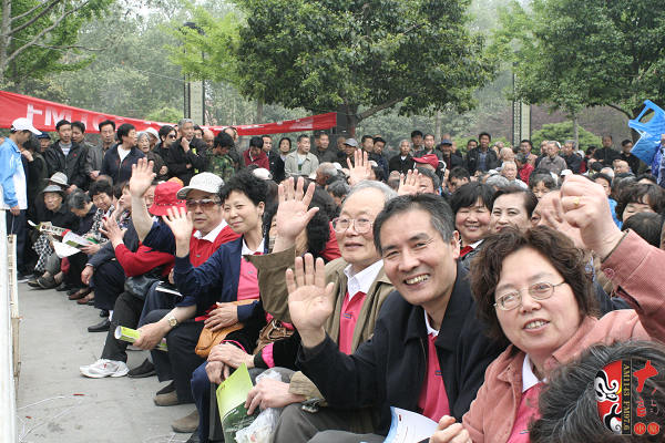 4月17日上午,在位于洛陽(yáng)市中心、以體現(xiàn)周朝文化為主題的周王城廣場(chǎng),“周公營(yíng)建洛邑”雕塑旁,主辦方舉辦了一場(chǎng)別開(kāi)生面的戲曲演唱會(huì)。來(lái)自鄭州、洛陽(yáng)兩地的豫劇名家張?jiān)聵s、曾廣蘭、趙曉梅、王藝紅,著名演員徐俊霞、陳大華、劉亞林、曲韻、劉海功、沈萍,梨園春明星擂主張艷紅、謝憲笙等為來(lái)自全省各地的戲曲廣播《戲迷俱樂(lè)部》百余位戲迷和現(xiàn)場(chǎng)的廣大觀眾奉獻(xiàn)了精彩的戲曲唱段。藝術(shù)家們演唱的《洛陽(yáng)橋》、《秦雪梅》、《七品芝麻官》、《對(duì)花槍》、《拷紅》、《收姜維》、《朝陽(yáng)溝》、《倒霉大叔的婚事》、《小白鞋說(shuō)媒》、《紅菊》等不同劇種、不同流派、不同行當(dāng)?shù)哪捴巳丝诘某?,博得觀眾一陣又一陣的掌聲,河南戲曲廣播主持人媛媛、李鋮表演的雙簧妙趣橫生,引得觀眾樂(lè)不可支。