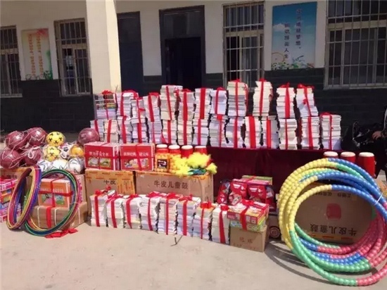 根據(jù)孩子們的現(xiàn)實需求和愿望,我們此次特別為孩子帶來了千本圖書以及腰鼓樂器、足球等體育用品,并捐獻(xiàn)給學(xué)校。