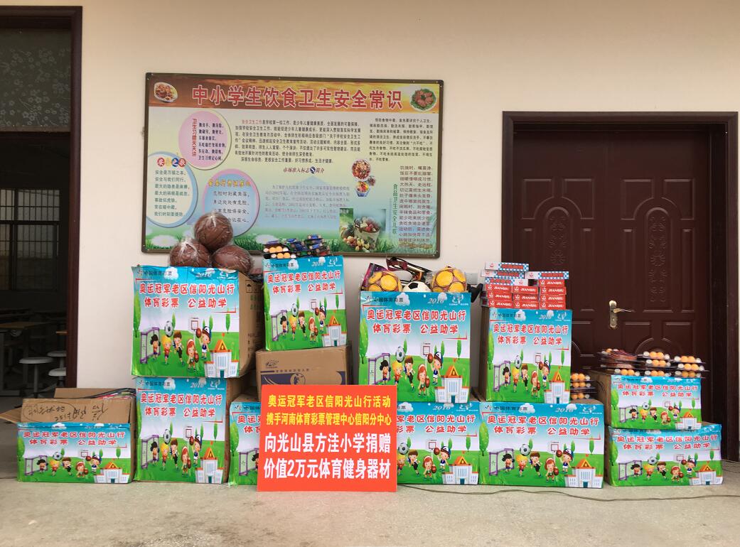 據(jù)信陽市人民政府和市體育局的相關(guān)工作要求和部署,借此機(jī)會(huì)進(jìn)一步提升體育彩票的公益品牌形象,作為本次活動(dòng)的支持單位,信陽體彩分中心在啟動(dòng)儀式結(jié)束后,在光山縣文殊鄉(xiāng)方洼小學(xué)舉行了“體育彩票 公益助學(xué)”體育器材捐贈(zèng)儀式,國(guó)家、省、市的相關(guān)領(lǐng)導(dǎo)、奧運(yùn)冠軍一行20余人參加活動(dòng)。簡(jiǎn)短的捐贈(zèng)儀式上,信陽體彩分中心向方洼小學(xué)捐贈(zèng)體育器材,校方回贈(zèng)錦旗,雙方還簽訂了器材接收和管理協(xié)議,相信這些體育器材一定能陪伴孩子們健康茁壯成長(zhǎng)。