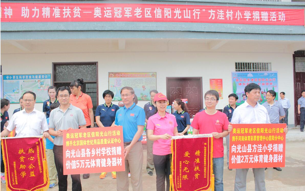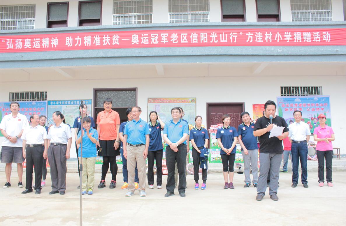 6月20日上午,由國(guó)家體育總局人力資源開發(fā)中心、河南省體育局和信陽市人民政府主辦,信陽市體育局、信陽市文明辦、信陽市扶貧辦和光山縣人民政府承辦的“弘揚(yáng)奧運(yùn)精神,助力精準(zhǔn)扶貧——奧運(yùn)冠軍老區(qū)信陽光山行”活動(dòng)啟動(dòng)儀式在光山文殊一中隆重舉行。