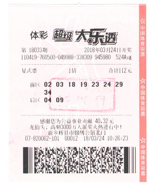 [摘要] 3月24日晚,大樂(lè)透第2018033期開(kāi)獎(jiǎng),全國(guó)共中出9注頭獎(jiǎng),其中,河南彩民郝先生以一張“8+2”復(fù)式票擒獲大樂(lè)透一等獎(jiǎng)1注