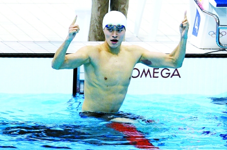一記揮拳,一聲大吼,400米自由泳,孫楊破奧運(yùn)紀(jì)錄奪冠。