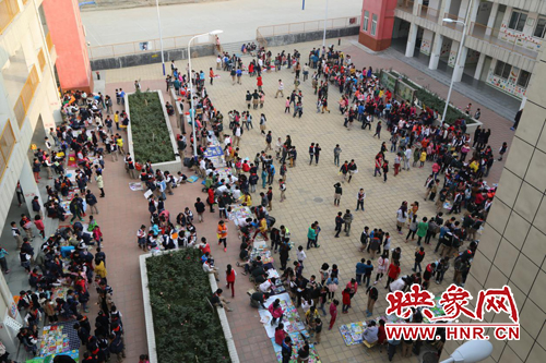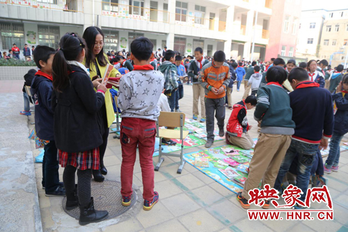映象網(wǎng)教育頻道訊(記者 李照華 通訊員 張俊杰)為培養(yǎng)孩子們節(jié)約資源、愛護環(huán)境的意識和良好的行為習(xí)慣,讓學(xué)生們體驗“公平買賣”和“勞動快樂”,結(jié)識更多的朋友,本著“你的多余,我的需要”理念,通過舊書循環(huán)利用,以“書換書”和“錢買書”的方式,推廣循環(huán)經(jīng)濟、生態(tài)環(huán)保的思想。經(jīng)開區(qū)外國語小學(xué)經(jīng)過前期精心的準備,于2015年11月4日下午,順利組織開展了主題為“悅分享 越快樂”的圖書“跳蚤市場”活動,讓學(xué)生把家中閑置的圖書在跳蚤市場活動中與同學(xué)等價交換或錢物交換。