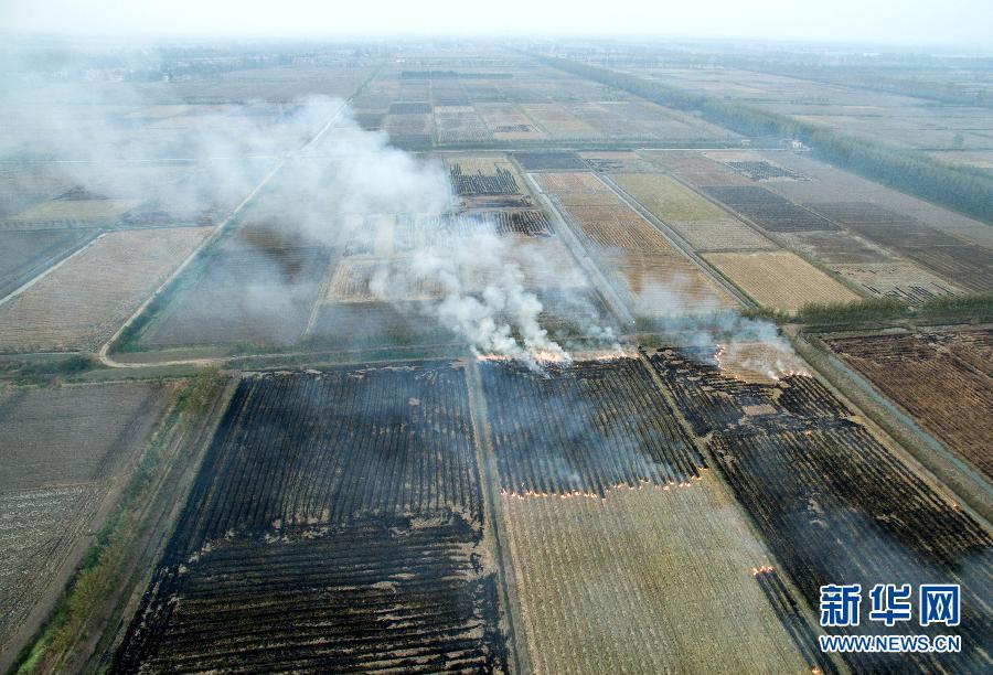 華北、華東、華中的天空烽煙再起??罩懈╊?,秸稈過火之地,猶如一塊塊“黑傷疤”。