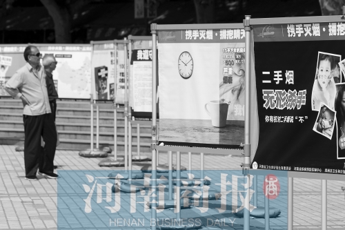 禁煙宣傳牌吸引路人駐足觀(guān)看