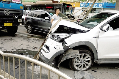 范先生的說法得到路口東北角一家醫(yī)院保安李師傅的證實。李師傅說,事發(fā)時,他就面向西南坐在醫(yī)院門口,當時南向北是綠燈,東向西是紅燈:“我先聽到了刺耳的剎車聲,抬頭看到白色現(xiàn)代帶著刺耳的剎車聲從南邊沖過來,然后拐向東北角,撞到了在路口等紅燈的淺灰色轎車?!?/p>