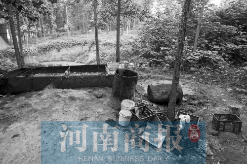 8月27日上午,二七區(qū)侯寨鄉(xiāng)青年農(nóng)場(chǎng)東300米(紫玉路南)的一片樹(shù)林中污水橫流??盏貎?nèi)擺放著近20個(gè)大油桶,幾個(gè)大鍋內(nèi)還有提煉地溝油后剩余的渣。