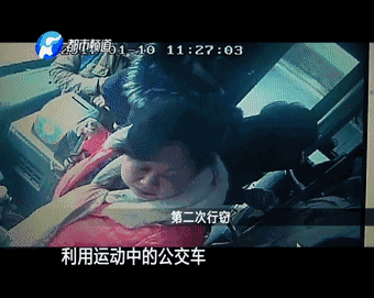 這是發(fā)生在鄭州市B12路公交車上的監(jiān)控視頻畫面,上午十點多,車廂內的乘客很多。