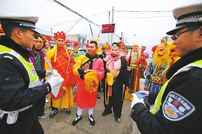 河南交警查車時發(fā)現(xiàn)一輛車由“孫悟空”駕駛,車上乘客則是《西游記》中的一群“神仙妖怪”,這則消息昨天成為網(wǎng)絡(luò)熱點(diǎn)。事情真相如何?昨天大河報記者聯(lián)系到河南省公安廳交警總隊(duì)相關(guān)人士進(jìn)行核實(shí)。