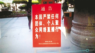 4月19日上午,市民王先生來電稱,紅極一時的人民公園的尬舞被叫停了,不知什么原因。上午10時,記者來到人民公園東門,進(jìn)門就看到一張紅紙告示“本園嚴(yán)禁任何團(tuán)體、個人聚眾網(wǎng)絡(luò)直播行為!”