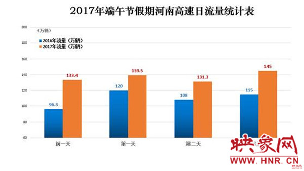 假期日均流量為138.6萬(wàn)輛,與2016年114萬(wàn)輛同比上漲21.5%。為2017年上半年日均流量120萬(wàn)輛的1.15倍?! ?