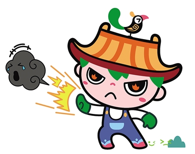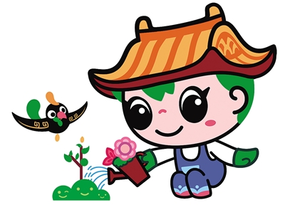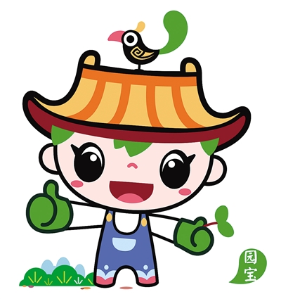 吉祥物“園寶”整體形象是一位朝氣蓬勃的小園丁,造型以傳統(tǒng)元素融匯時(shí)尚風(fēng)格,集建筑、山水、植物、動(dòng)物、文化藝術(shù)等園林要素于一身;頭頂?shù)拿弊有嗡浦惺絺鹘y(tǒng)建筑屋頂,象征中國(guó)古典園林建筑,代表“園”;蔥郁的頭發(fā)和雙手,胸部、腿部圖案、色彩等,象征山水花木,代表“林”;身體五彩繽紛,臉部笑容明媚親和,右手豎起點(diǎn)贊的大拇指;左手執(zhí)新綠萌發(fā)的葉芽,象征園林工作者辛勤耕耘,讓華夏大地永葆綠水青山。