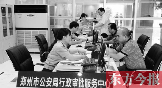 在鄭州市公安局行政審批服務(wù)中心,工作人員正在為辦事群眾辦理審批事項(xiàng)