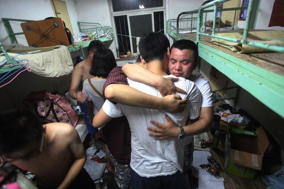 2013年6月24日,山東濟(jì)南,在山東師范大學(xué)宿舍樓里,舍友們緊緊抱在一起不舍離去。因?yàn)檫@是他們大學(xué)生生涯的最后一夜。當(dāng)晚,大學(xué)生們無法入眠,酒杯聲、哭聲交織在整個(gè)宿舍樓。第二天起床就要背著行囊啟程了,此時(shí)此刻發(fā)現(xiàn)校園生活是多么珍貴,四年大學(xué)時(shí)光轉(zhuǎn)瞬即逝,不得不各奔東西,像蒲公英一樣飄向社會(huì)每個(gè)角落,尋求屬于自己的新舞臺(tái)。