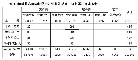 河南省2013年普通高等學(xué)校招生計(jì)劃統(tǒng)計(jì)總表(分科類、分本專科)