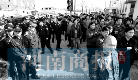 4月5日下午3時(shí)20分許,鄭州市長(zhǎng)江路與工人路交叉口東、西、北三個(gè)方向的路口處,站著近百人,將此處堵得嚴(yán)嚴(yán)實(shí)實(shí),過往車輛只能繞行。