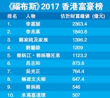 《福布斯》2017香港富豪榜。圖片來(lái)源于香港商報(bào)。