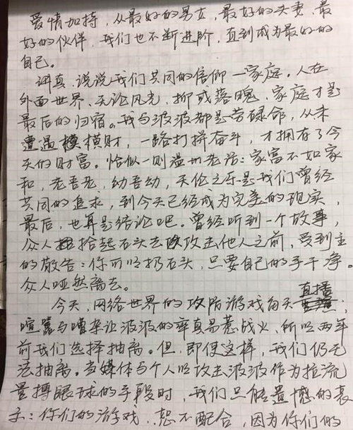 周立波妻子手寫信截圖