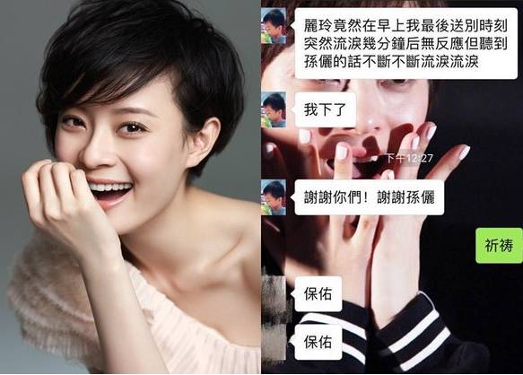 據(jù)臺灣媒體《東森新聞云》3月13日報道,大陸女星孫儷因為演出《后宮甄嬛傳》、《羋月傳》等戲,紅透兩岸三地。最近有名叫“麗玲”的粉絲腦死昏迷36小時;沒想到孫儷得知,本人竟錄音,聲聲喚“趕緊醒過來”;并答應愛畫圖的她,等她醒來,“我就坐在你面前讓你畫?!睕]想到她聽完竟流淚,也醒過來了。