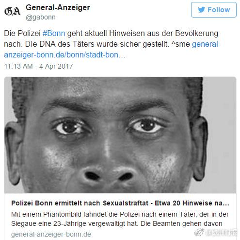 海外網(wǎng)4月4日電據(jù)歐洲時(shí)報(bào)援引德媒報(bào)道,周日(2日)凌晨,在波恩周邊露營(yíng)的一對(duì)年輕情侶遭到“深色皮膚罪犯”持大彎刀威脅。案犯劃破帳篷強(qiáng)迫23歲女子到帳篷外,當(dāng)著她26歲男友的面將女子強(qiáng)奸。案犯還威脅26歲男友稱“如果敢報(bào)警就殺了他”。目前,警方正在通緝嫌犯,據(jù)估測(cè)嫌犯年齡在20到30歲,身高1.8米。