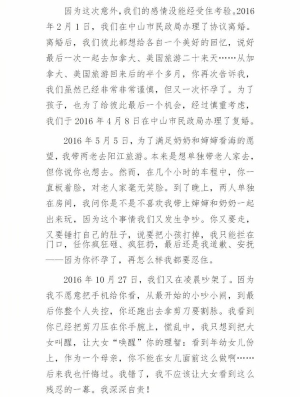 劉洲成凌晨發(fā)長文否認家暴