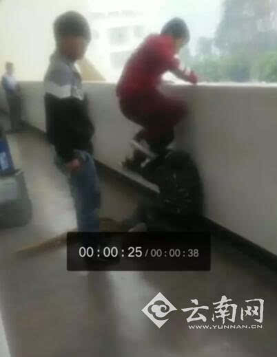 據(jù)云南網(wǎng)記者介紹,網(wǎng)友爆料的視頻中,一名身材瘦小的男孩在學(xué)校陽臺被兩人暴打,還被連續(xù)踢頭,一旁還有同學(xué)在起哄,盡管男孩被打到下跪,但打人者還是依依不饒繼續(xù)拳打腳踢,整個視頻長達(dá)1分24秒。在網(wǎng)友提供的第二段視頻中,此前被毆打的這名男生蜷縮在樓道內(nèi),而打人者人數(shù)也增至多人,除了拳打腳踢外,還用掃帚擊打他的頭部,部分學(xué)生在一旁圍觀和嘲笑。有網(wǎng)友表示小學(xué)生竟能如此心狠手辣,令人痛心。