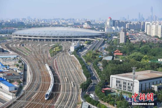 6月26日,具有完全自主知識產權的中國標準動車組“復興號”在京滬高鐵正式雙向首發(fā)。中新社記者 侯宇 攝